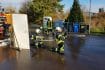 Hierzu haben wir eine freistehende Tür gezimmert (um einen Brand dahinter zu simulieren), die wir nun zu Trainingszwecken ins Freie stellen können um so auch tatsächlich mit Wasser arbeiten zu können (was im Gebäude so nicht gehen würde).