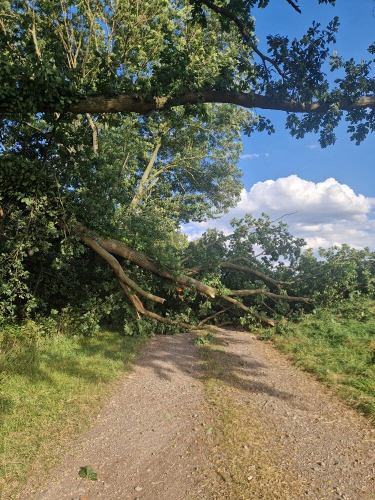 Wir wurden zum Einsatzstichwort „Baum auf Straße“ an die Weiße Elster gerufen. Mit 2 Kettensägen und 8 Kameraden konnten wir den Baum zersägen und die Straße wieder befahrbar machen.