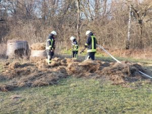 Zum Wochenbeginn wurden wir um 15:52 Uhr zu einem Strohballenbrand alarmiert. Es brannte ein Strohballen, den wir mit einem C-Rohr zügig löschen konnten.