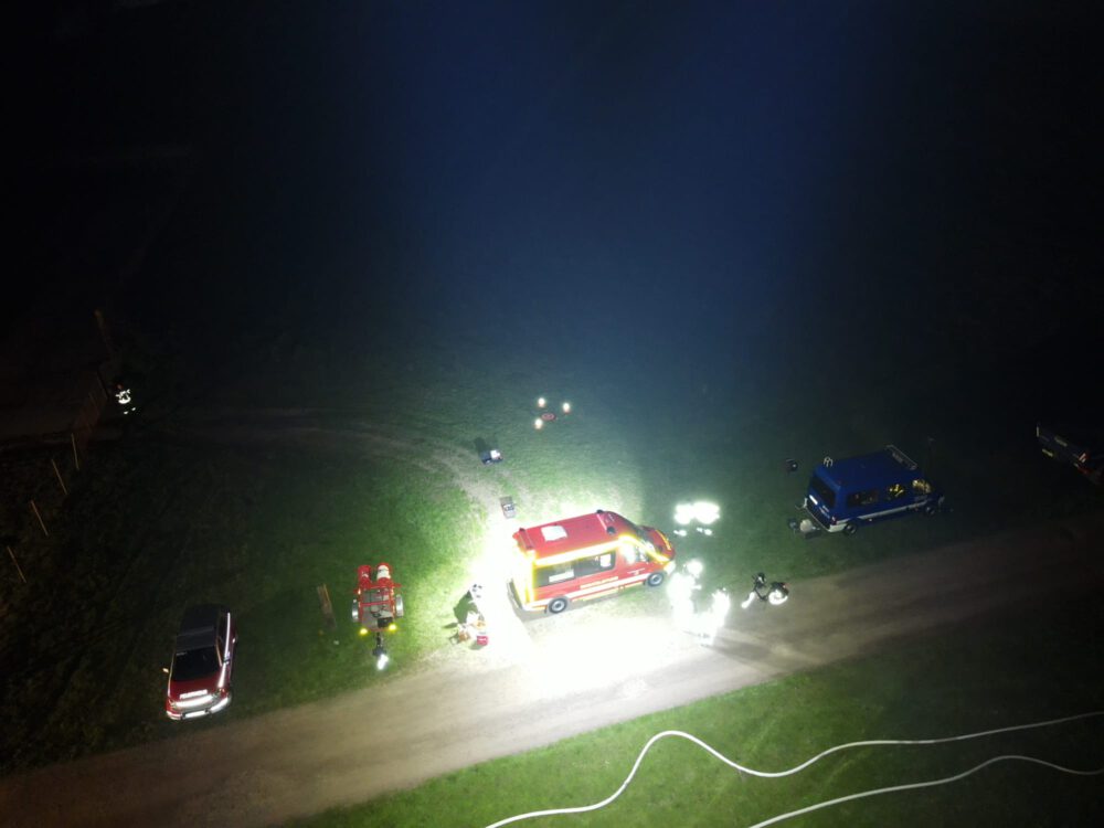 An diesen Einsatz waren 8 Feuerwehren, das THW, die Drohnengruppe, sowie die Polizei und der Eigentümer beteiligt.