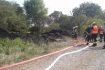 Es brannte auf eine Fläche von ca. 1.200 m². Dies wurde durch die beteiligten Feuerwehren mit Angriffstrupp unter PA. und weiteren Einsatzkräften abgelöscht.