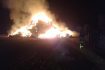 Alarmstichwort: Strohdiembrand. Lagebeurteilung vor Ort, Strohdiemen sollen kontrolliert abbrenne. Es brennen ca. 300 Strohballen in voller Ausdehnung.