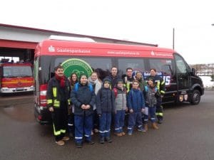 Für alle 20 interessierten Jugendlichen wurden Freistellungsanträge für die Schule vorbereitet, bei denen nur noch die entsprechenden Klassenlehrer eingetragen werden mussten und die Erziehungsberechtigten unterschreiben mussten. Um allem auch einen offiziellen Anstrich zu geben, hatte Bürgermeister Haufe – qua Amt Chef der Freiwilligen Feuerwehr – ein Schreiben unterschrieben, in dem bestätigt wurde, dass diese Fahrt stattfindet. Parallel dazu musste ein Bus organisiert werden. Hier kam der Tipp sich doch einmal an die Saalesparkasse zu wenden. Die Anfrage war schnell geschrieben und dann ging es schnell und unkompliziert. Innerhalb einer Woche war der Sponsoringvertrag unterschrieben. Daher an dieser Stelle ein großes Dankeschön an die Saalesparkasse für diese Unterstützung.