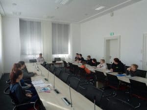 Anschließend wurden wir alle in einen Besprechungsraum geführt und Landtagsabgeordnete Dr. Verena Späthe (SPD) kam zu uns. Nachdem Frau Dr. Späthe etwas über die Arbeit im Landtag erzählt hatte, konnten die Jugendlichen Fragen stellen. Neben Fragen, seit wann Frau Dr. Späthe im Landtag sitzt und welche Themen sie bearbeitet, lag der Schwerpunkt des Gespräches auf Fragen zur Bildungspolitik, zur Feuerwehr und zum Rettungsdienst. Die Stunde, die für dieses Abgeordnetengespräch angesetzt worden war, verging wie im Flug.