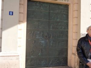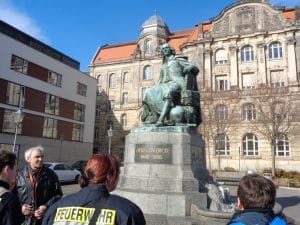 Pünktlich 13 Uhr standen wir dann wieder vor dem Landtag, um unseren Stadtführer zu treffen. Zum Glück war es ein schöner Tag mit blauen Himmel und Sonnenschein. In den folgenden anderthalb Stunden besuchten wir den berühmten Magdeburger Dom, in dem sich das Grab vom Kaiser Otto I. befindet, liefen durch das Hundertwasserhaus und liefen zum alten Markt. Wir erfuhren viel über die Geschichte unserer Landeshauptstadt, z.B. dass sie sowohl im dreißigjährigen Krieg als auch im zweiten Weltkrieg jeweils zu sehr großen Teilen zerstört worden war.
